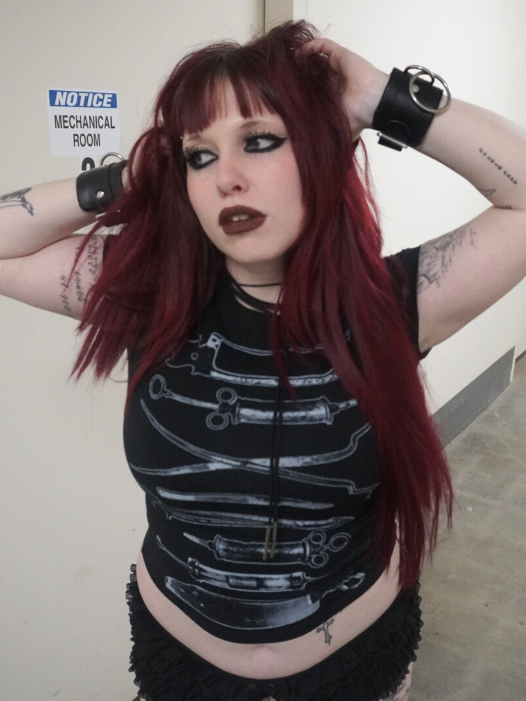 Pair with a bondage maxi skirt, platforms and our Opheliac bag for the perfect look to sulk around.